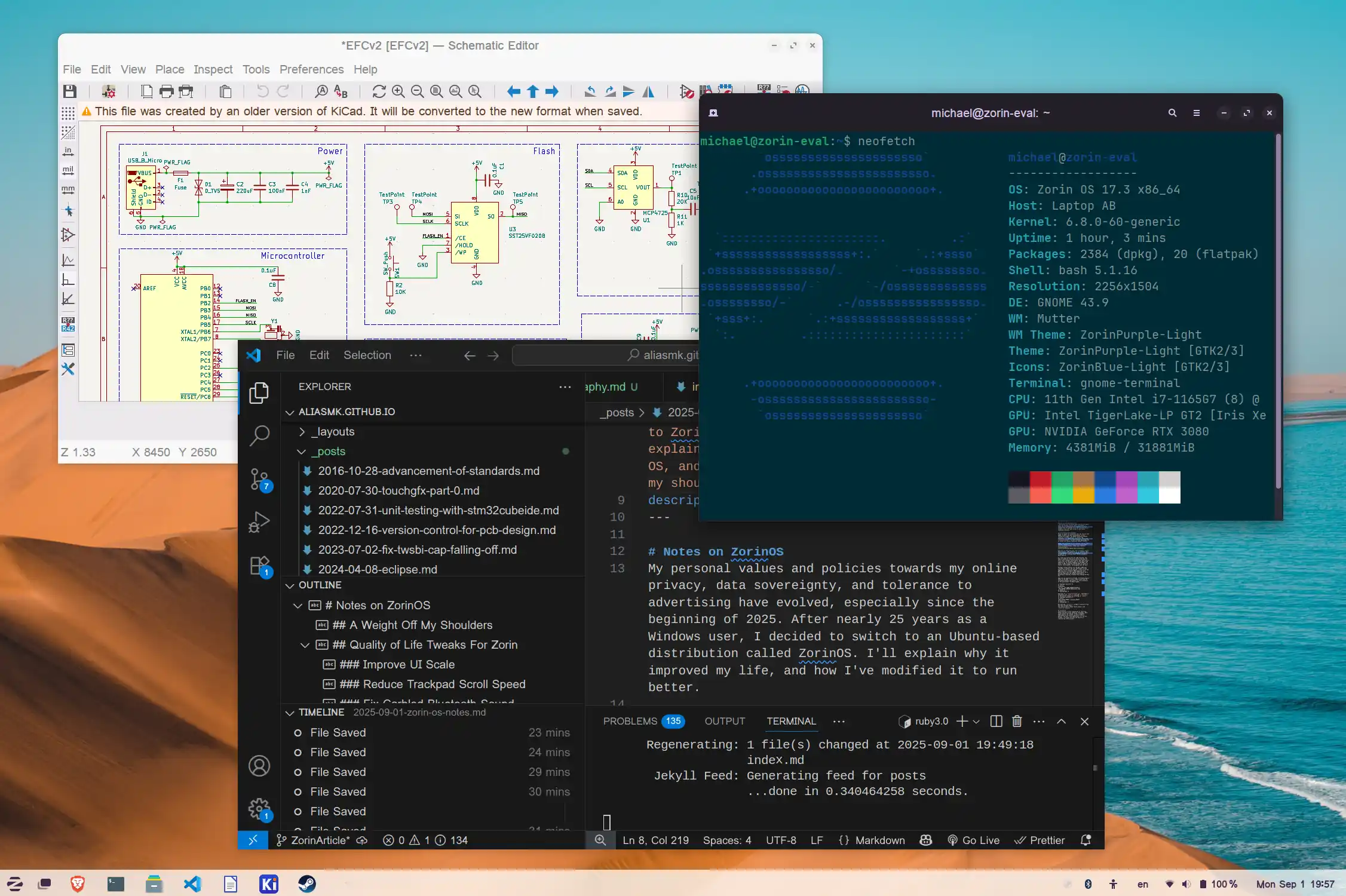 Transitioning to Linux required me to learn new things and work around technical challenges. With these hurdles now crossed, I feel a tangible improvement to my overall quality of life in general, and have a new appreciation for how the systems I use daily can have the ability to influence my state of mind.